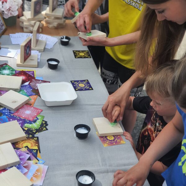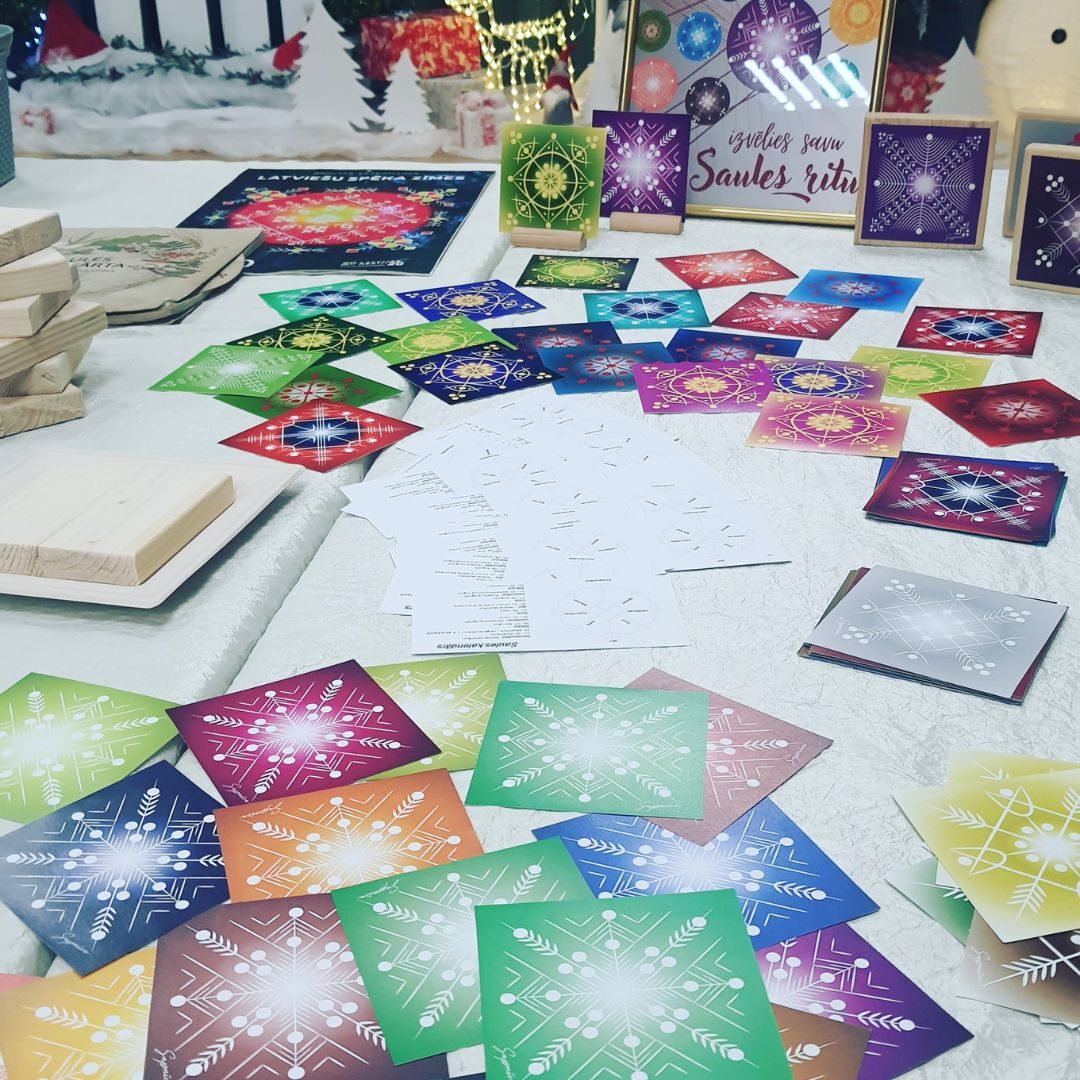 Šī radošā darbnīca ir ĪPAŠA, kur dalībnieki varēs izvēlēties savu Saules ritu (dizainu un krāsu), kuru uzlīmēs uz koka dēlīša (10x10) un apstrādās, lai kalpo ilgi. Saules rita galvenā funkcija ir būt kustībā, un viss lai notiek pa Saulītei. Saules kalendāra atspoguļojums, kur akceptēti 8 Saules stāvokļi (punkti/stari - krusta krusts). Tā kā sveicam Sauli un galvenais simbols ir Saule (aplis, kā arī rombs, latviešu simbolikā – stūrainā Saulīte), tad dalībnieki izvēlēsies savu Saules ritu/riteni un attiecīgo krāsu, veiks atbilstošās darbības, pasniedzēja vadībā. Notiks apstrāde ar PVA līmi, kur katram būs iespēja ielikt dēlīti kastītē, lai komfortabli aiznest uz mājām, izžūšanai.